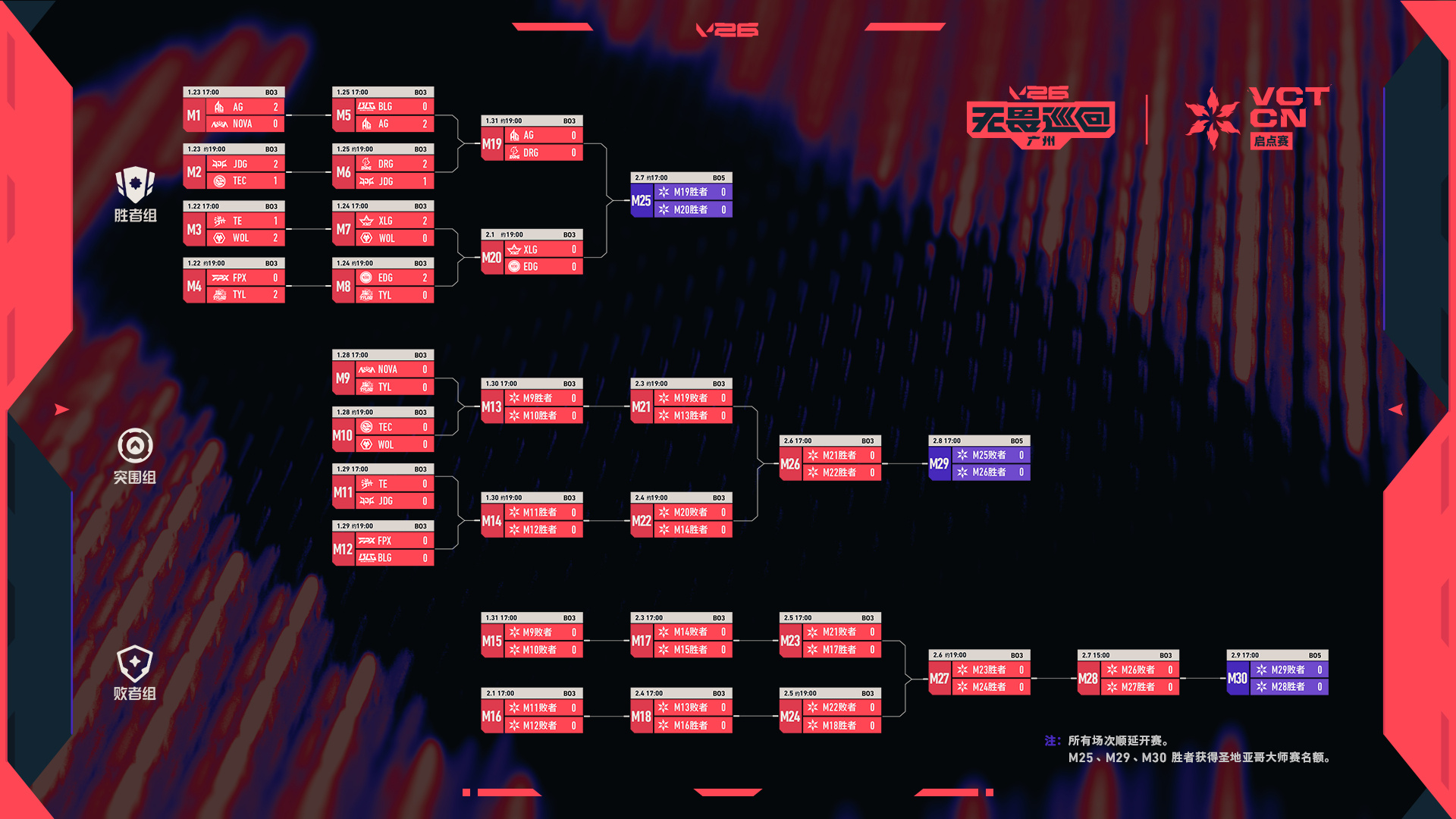第二周赛事将从1月28日持续至2月1日,五天的赛程中将进行10场比赛交手,各队伍将在胜者组、突围组与败者组展开多轮较量,直至2月7日-9日的总决赛亿配资,届时三场BO5巅峰对决将依次上演,胜出队伍将以CN赛区1-3号种子身份晋级 2026 圣地亚哥大师赛,与全球顶尖战队争夺冠军赛积分。